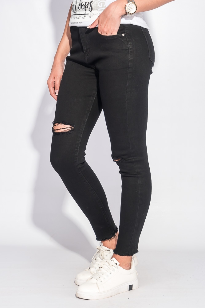 Джинсы женские однотонные с порезами 613K004