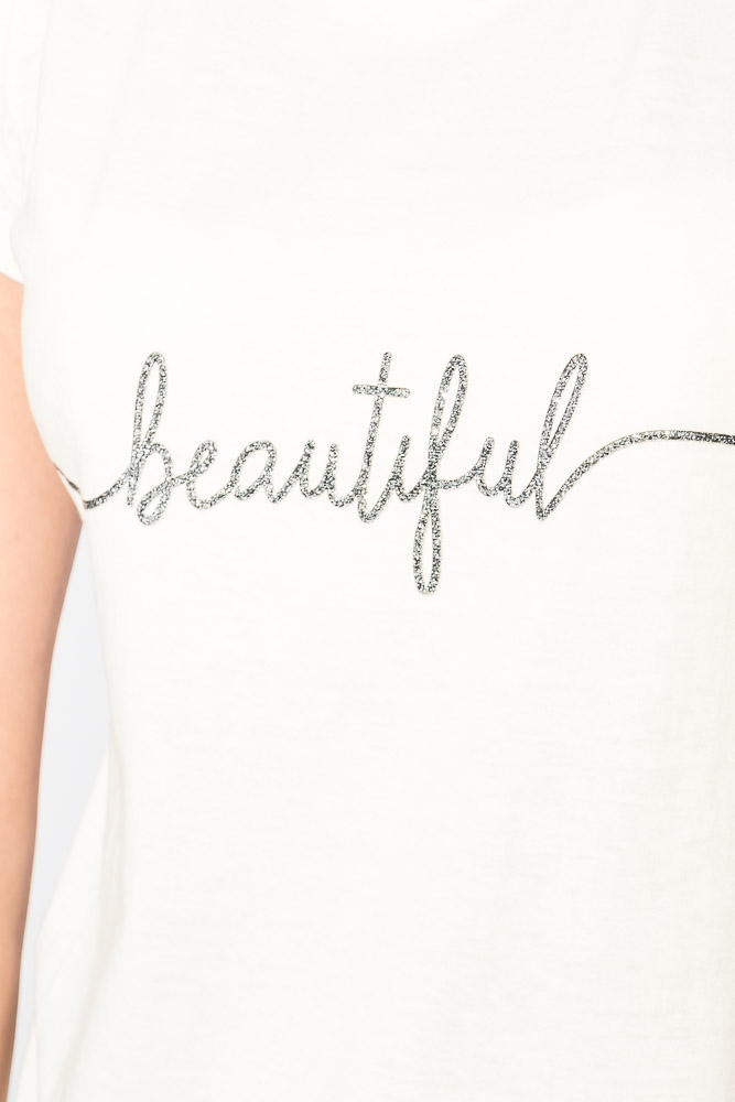 Футболка женская с блестящей надписью 211F028-4