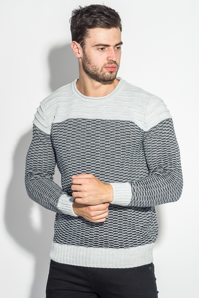 Свитер мужской с фактурной полоской на плечах 498F006